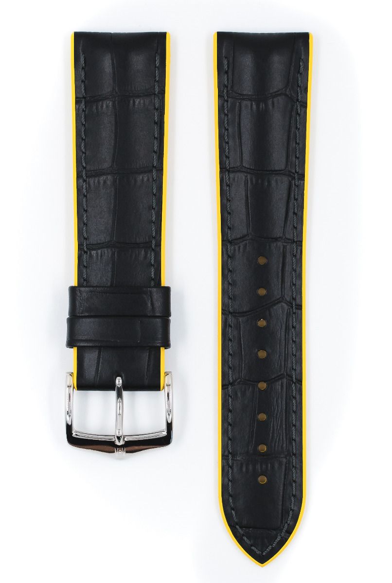 ANDY est issu de notre collection HIRSCH Performance. Le gaufrage façon alligator à effet naturel, surface semi-mate et bitonalité caractéristique apporte une touche exotique au poignet. Toutefois, le véritable point de mire est l’âme en HIRSCH Premium Caoutchouc coloré. Grâce à son puissant rembourrage, ce bracelet est agréable à porter et se love presque imperceptiblement autour du poignet.